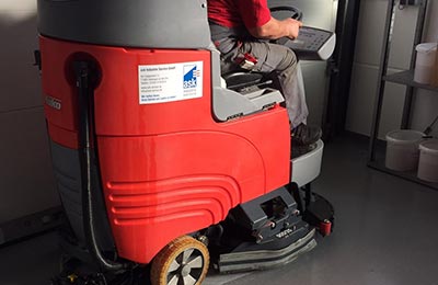 Schnell und effizient mit modernen Maschinen und kompetenten Mitarbeitern sorgen wir für saubere Hallenböden.